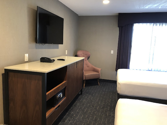 The main room included a king sized bed with a pull out sofa and a nice sized tv and microwave.